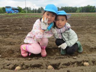 その後、じゃがいもを「おおきくなーれ!」と言いながら植えることができましたよ♪