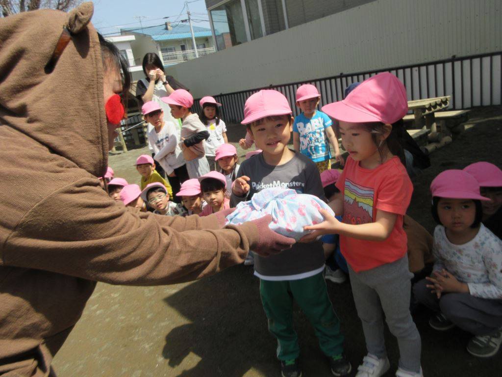 「あしがら山」から金太郎さん・クマさんが保育園に遊びに来てくれて、子どもたちとかけっこ競争をして楽しみました!