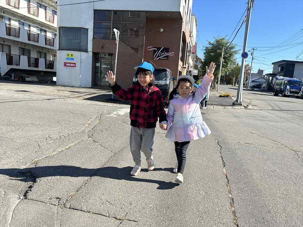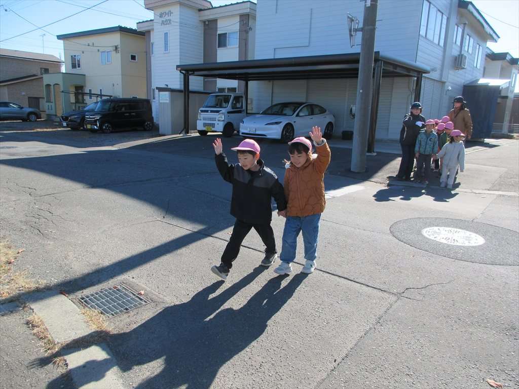 その後は園周辺を実際に歩き、歩道の歩き方や交差点の渡り方などたくさん学びました。