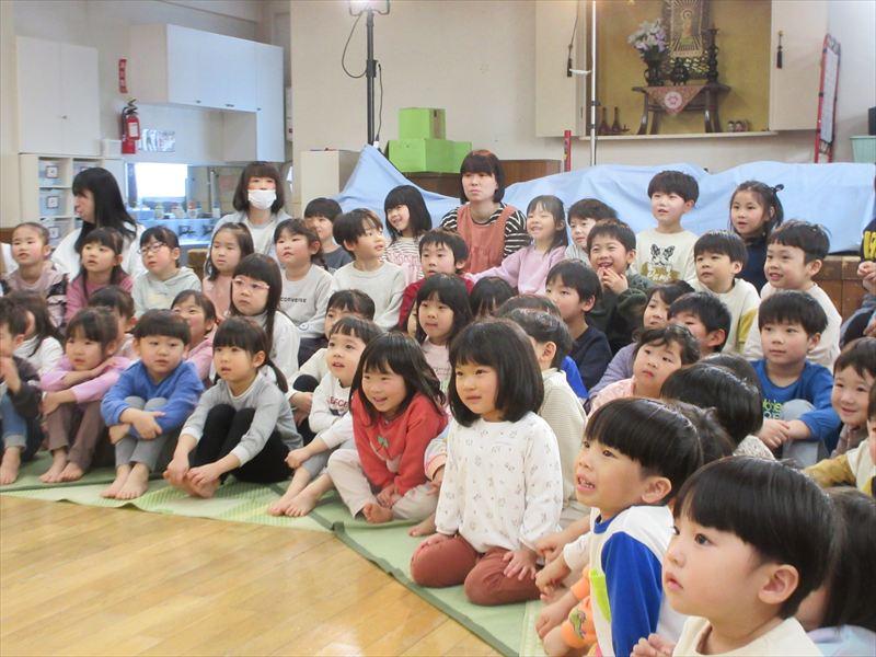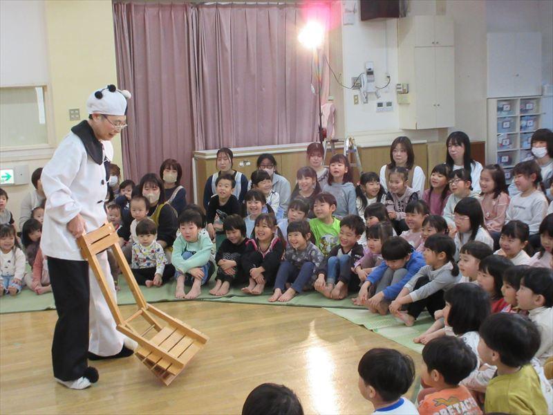 劇団風の子さんが、保育園に来てくれて、たくさんの玩具が登場する楽しい劇「なんだこりゃなんだのちゃちゃちゃ」を見せてくれました。