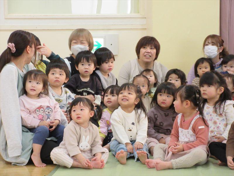 子どもたちは、次から次へと出てくるおもちゃや不思議な音に大喜びで、広場には大きな笑い声や歓声が響き、みんなで楽しい時間を過ごすことができました。最後はたくさんの玩具を近くで見せてもらい、大満足の子どもたちでした。