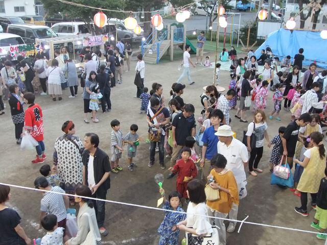 涼しい気温の中で、みんなが楽しみにしていた夏まつりが行われました。年長さんの夏まつり宣言から始まり、夜店めぐりを楽しみ、夜になると年長さんの「カンテラ行列」と五役のお父さんたちによる「花火」の明かりがとてもキレイで、子ども達も大満足そうでした。