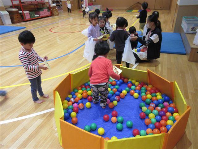カードの難易度がぐんっと上がり、番号順にポイントを回ってシールを集めます。プレイルームでじゃんけん、広場ではシールのついたボールをさがしてゲットするなど難易度があがりましたよ!