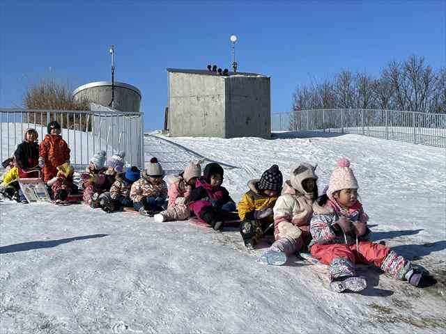 そり遊びでは自分の米そりを使ったり、ブルーシートに複数人で乗って何度も滑って楽しんでいましたよ♡