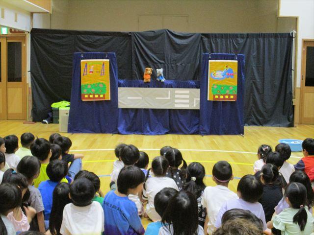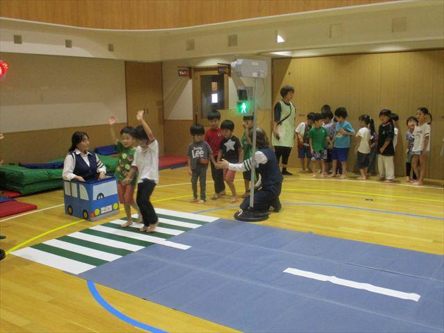 3・4・5歳児対象で人形劇をみたあと、4・5歳児は横断歩道の渡り方を教えてもらいましたよ